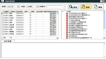 3)人員信息搜索 填寫內(nèi)容,點(diǎn)“查詢”項(xiàng),系統(tǒng)會(huì)自動(dòng)檢索到該人員。 4)指定設(shè)備 在右側(cè)框選中該場所下的設(shè)備,點(diǎn)擊“授權(quán)”項(xiàng),給該人員指定所對應(yīng)的設(shè)備,指定成功,設(shè)備將自動(dòng)與考勤機(jī)通訊,實(shí)現(xiàn)實(shí)時(shí)更新。