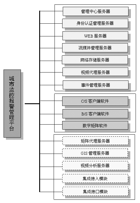 城市監(jiān)控報(bào)警聯(lián)網(wǎng)管理平臺(tái)軟件組成結(jié)構(gòu)圖