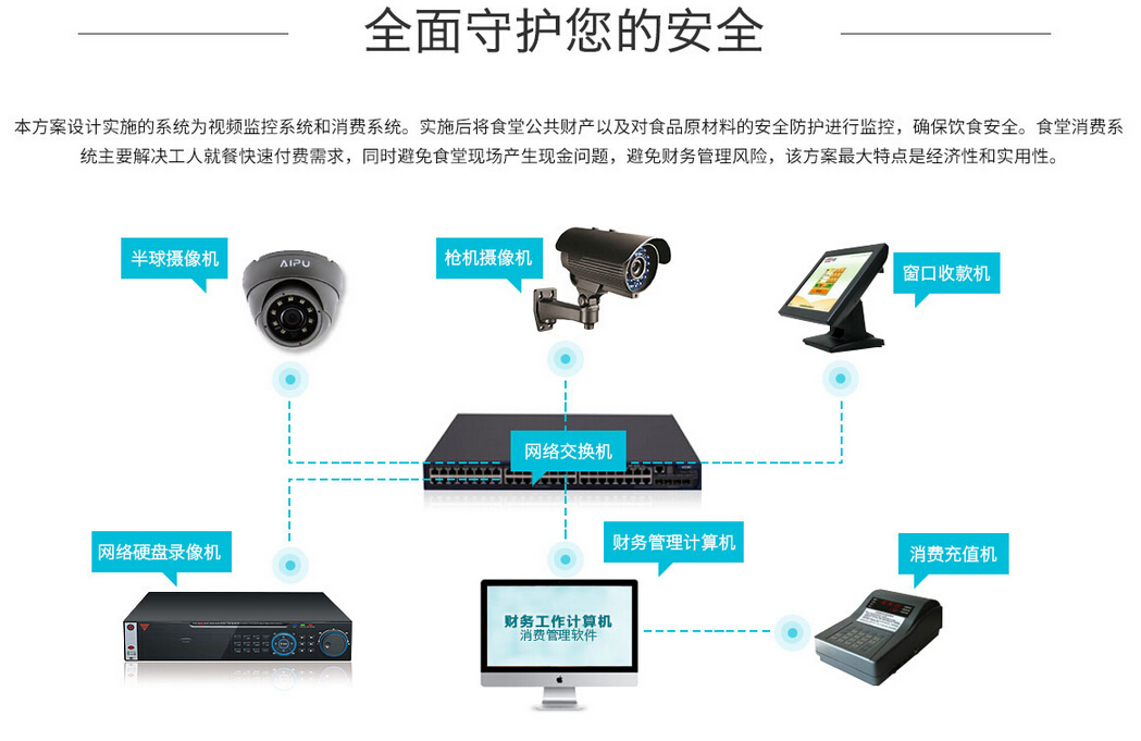 小型工廠食堂監(jiān)控及消費系統(tǒng)套餐配置清單報價表