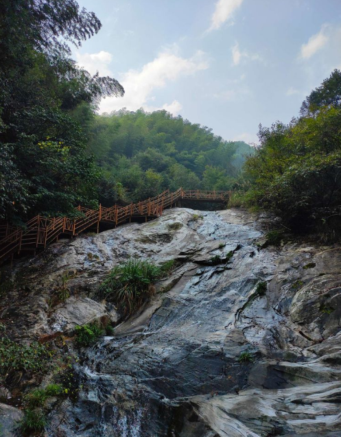 河道兩岸峰巒聳峙,巨石如林,較為罕見的是成片的花石板河床,斑斕流動,如鏡如削。在漂流過程中,跌宕起伏,順流直下,時而花叢穿行,時而驚險有趣。